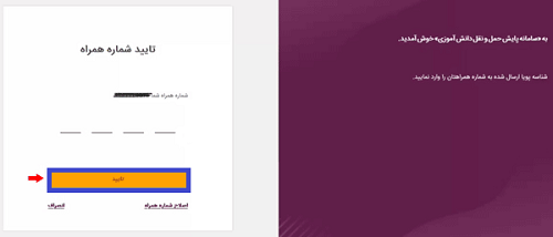 در این مرحله کدی به شماره موبایل شما ارسال می شود که می بایست آن را در فیلد مربوطه وارد نمایید.