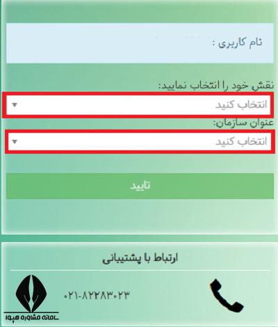 در این قسمت می بایست نقش خود و نام سازمان را مشخص نمایید :